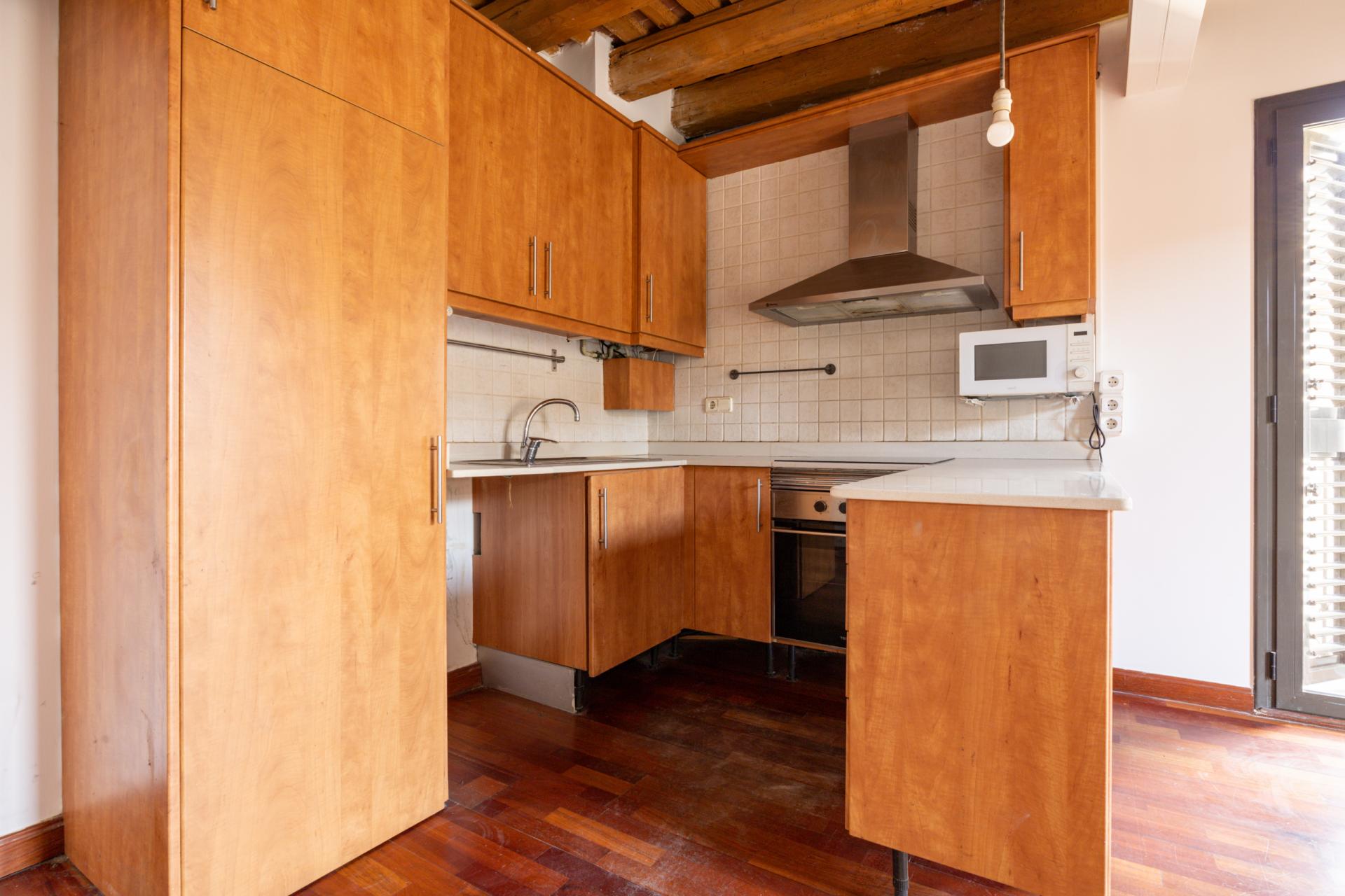 On the first floor, the kitchen-dining area is presented as an open and bright space with access to two balconies, allowing you to enjoy the atmosphere of the historic centre. On this same level there are two exterior bedrooms, one double with a built-in wardrobe and one single bedroom, as well as a bathroom with a shower.