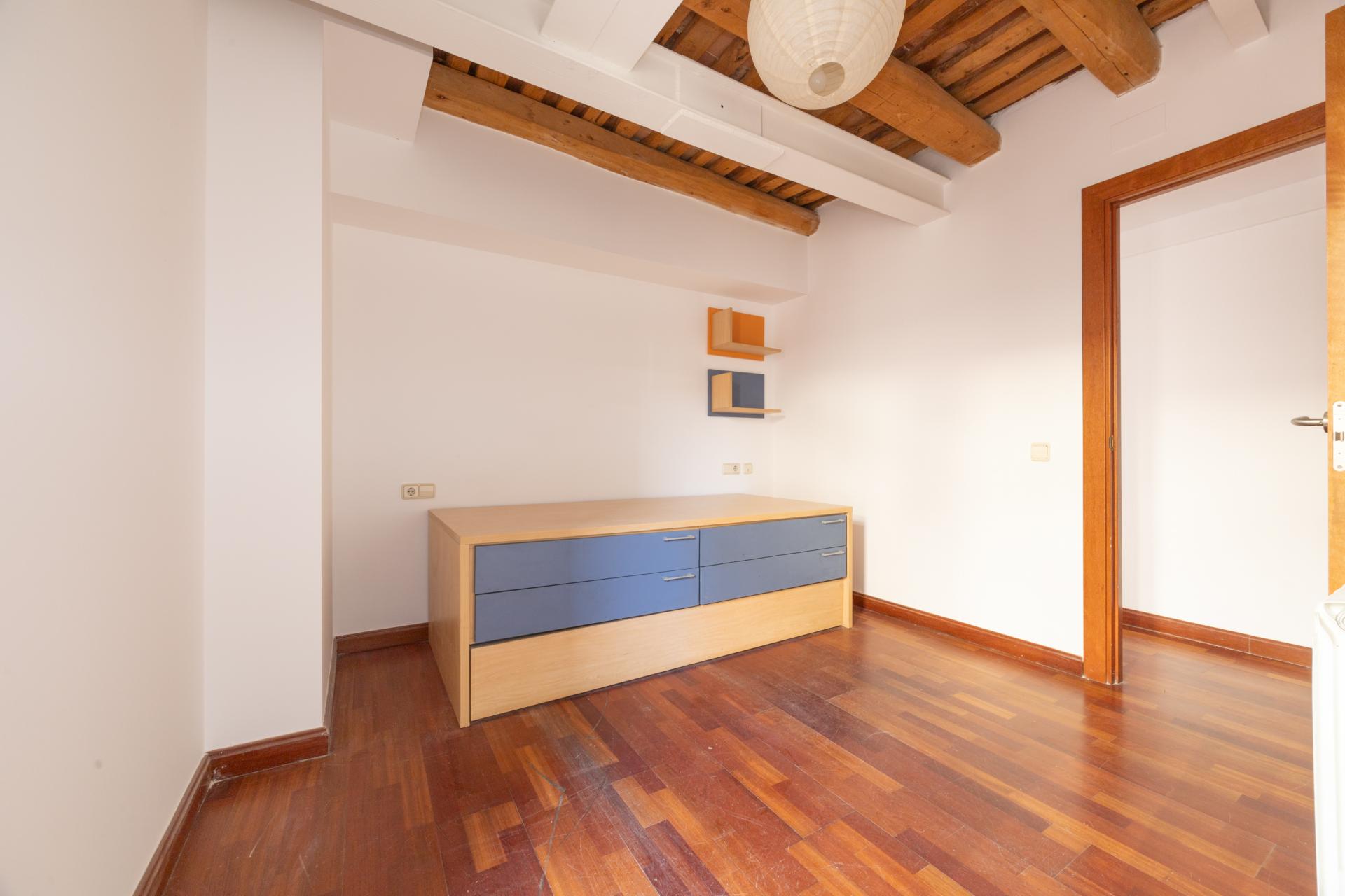En la primera planta, la cocina-comedor se presenta como un espacio abierto y luminoso con salida a dos balcones que permiten disfrutar del ambiente del centro histórico. En esta misma planta encontramos dos habitaciones exteriores, una doble con armario empotrado y una individual, y un baño con plato de ducha.