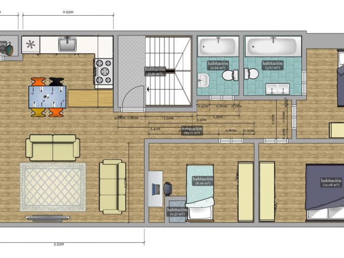 El pis compta amb dues habitacions dobles, una tipus suite amb bany incorporat, i una habitació individual, a més d’un bany independent, tots equipats amb plats de dutxa moderns i mampares, ideals per desconnectar després d’un llarg dia.
