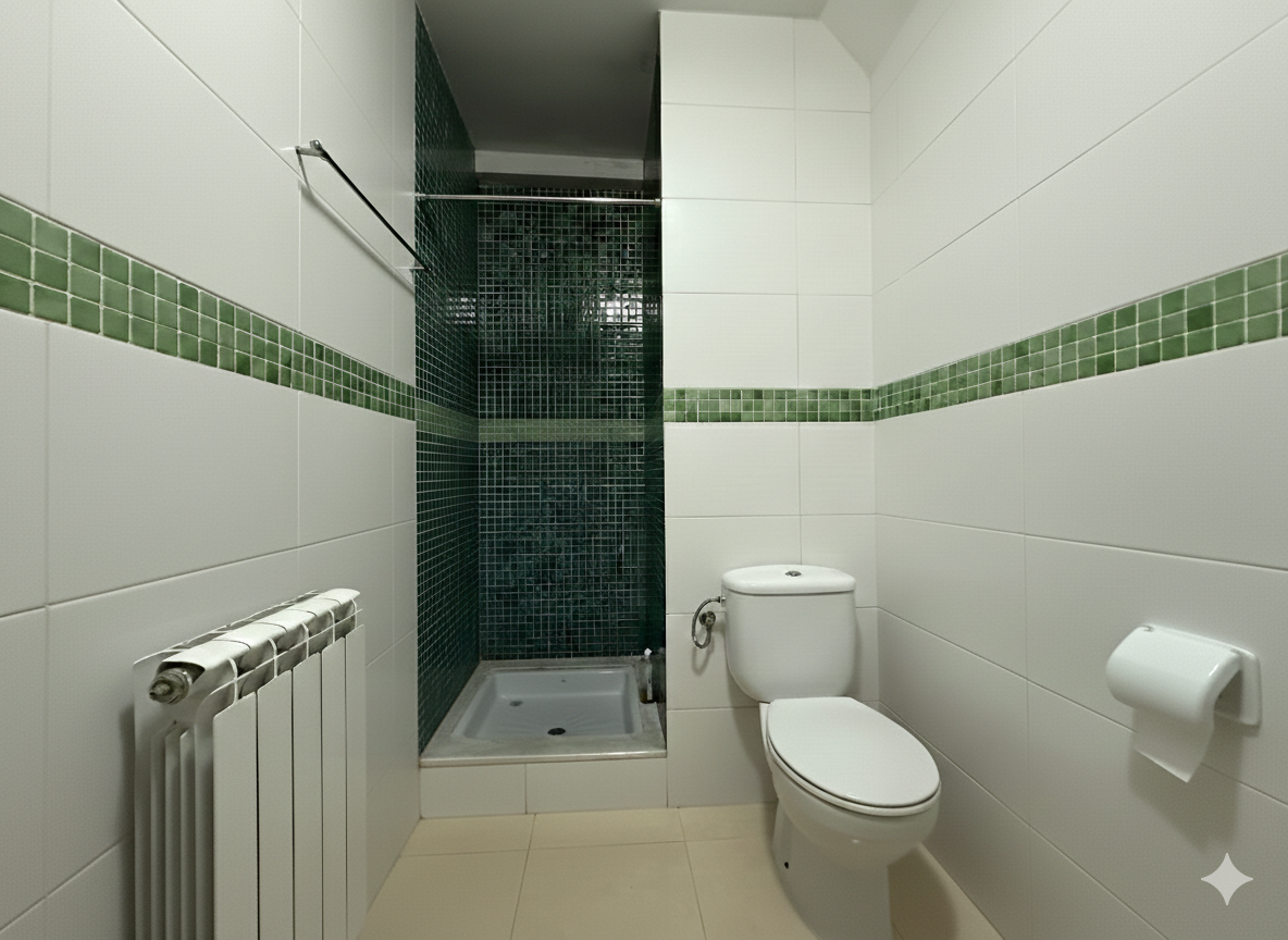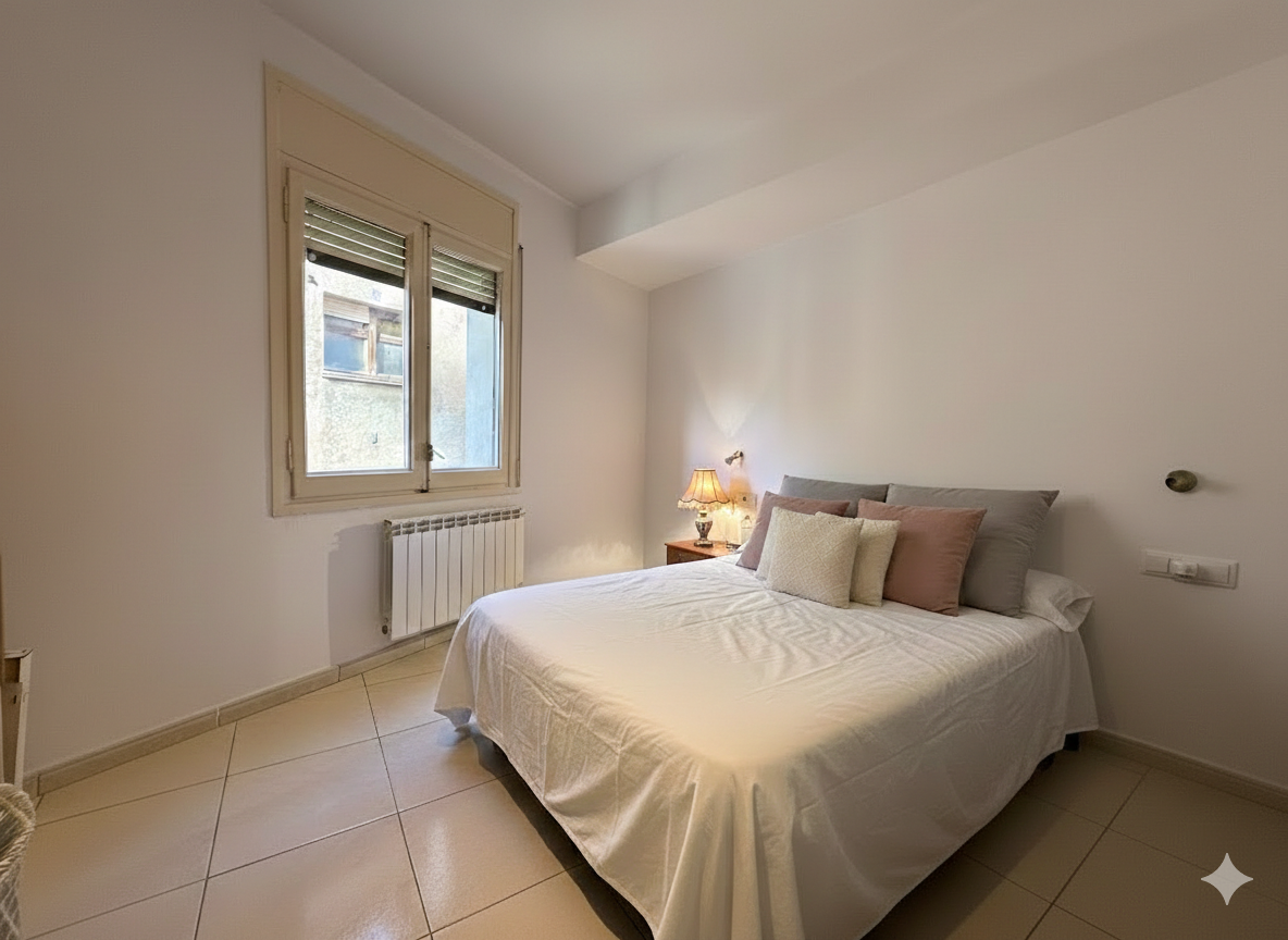 La zona de nit compta amb tres habitacions dobles, dues d’elles interiors per garantir tranquil·litat i silenci, ideals per descansar o treballar des de casa. La tercera habitació és versàtil i s’adapta a diferents necessitats familiars. El bany complet disposa de plat de dutxa i acabats moderns.