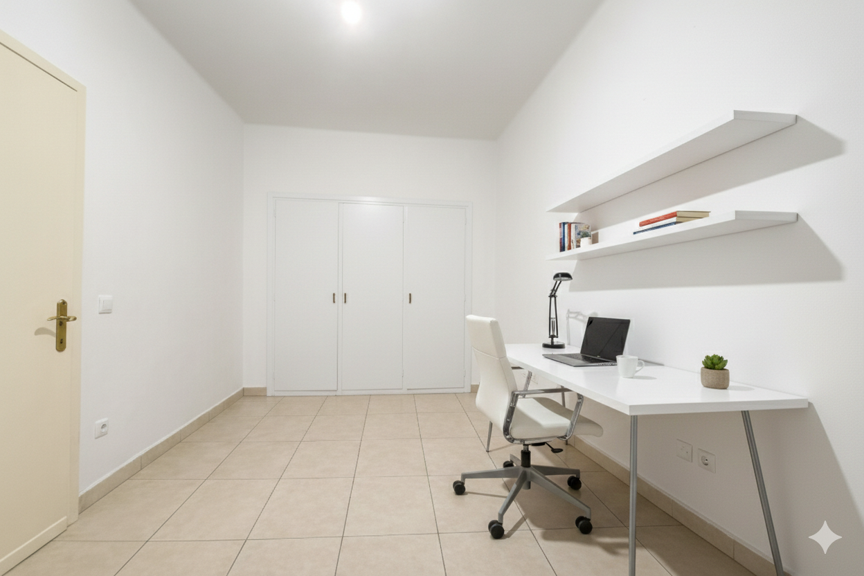 La zona de noche cuenta con tres habitaciones dobles, dos de ellas interiores para garantizar tranquilidad y silencio, ideales para descansar o trabajar desde casa. La tercera habitación es versátil y se adapta a diferentes necesidades familiares. El baño completo dispone de plato de ducha y acabados modernos.