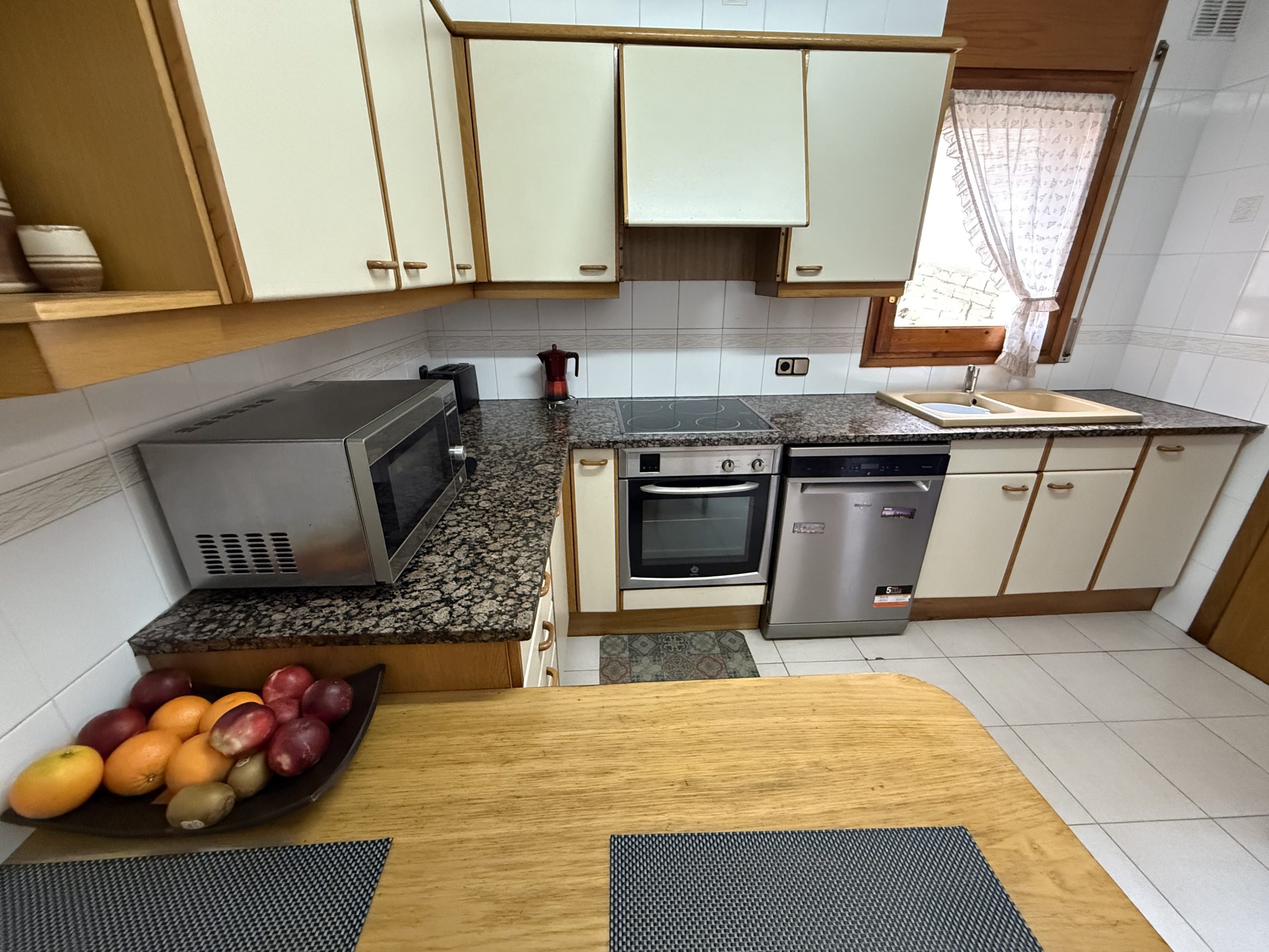 La primera planta es una vivienda de 109 m² lista para entrar a vivir, con cocina office equipada, tres habitaciones dobles, un baño completo con bañera, lavadero, un amplio salón-comedor y un balcón de 12 m².