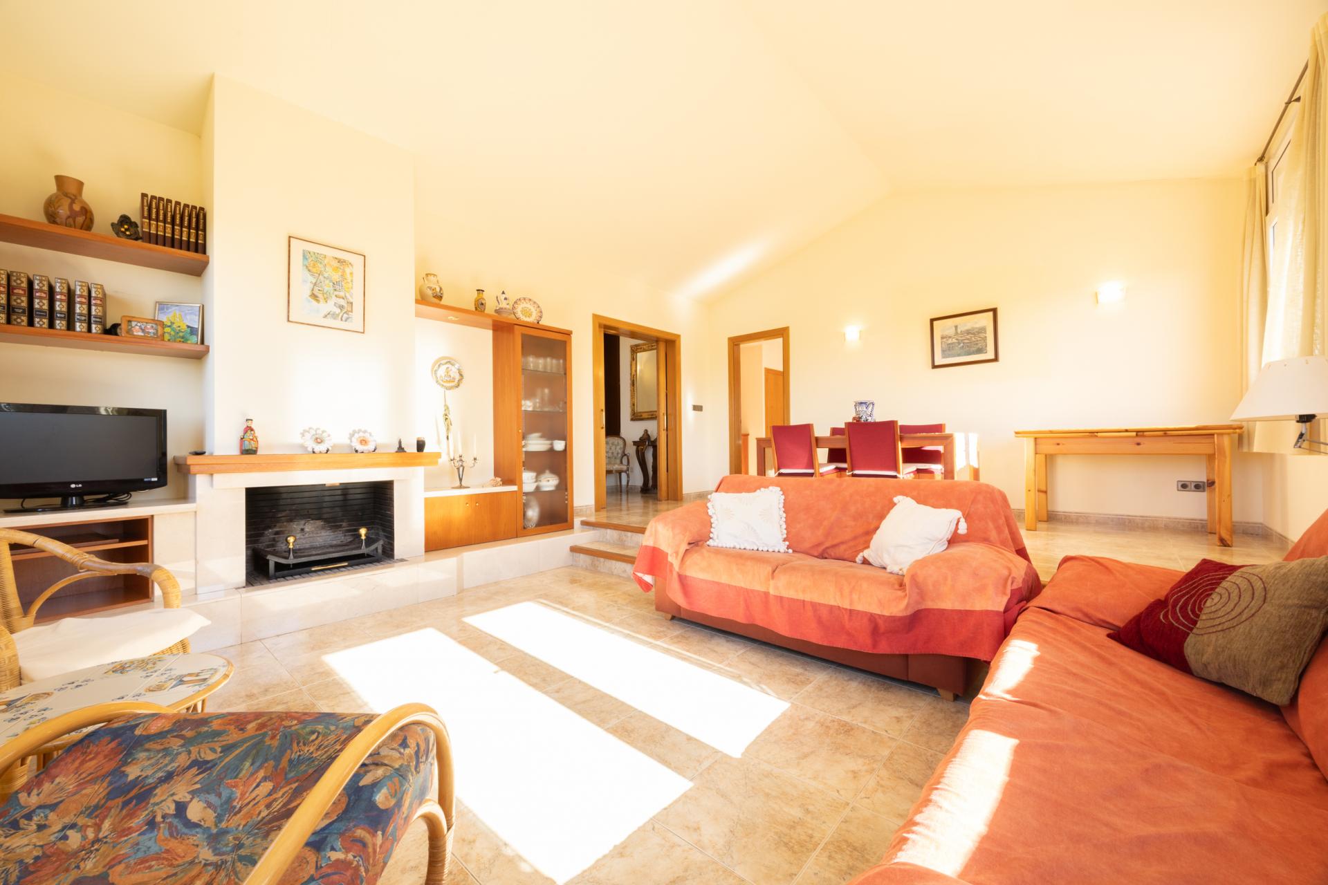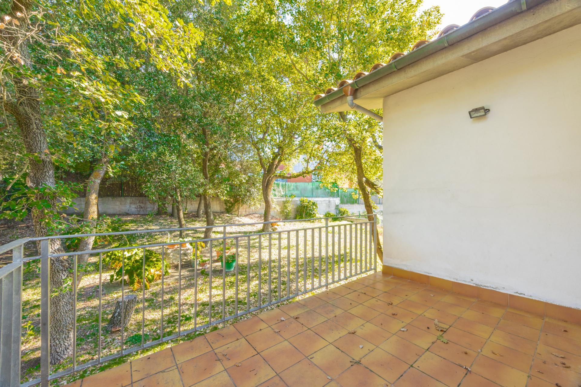 The house is surrounded by a garden, is very bright, and offers open views. Among its features are parking, double glazing, PVC carpentry, tiled floors, fireplace, office-style kitchen, porch, terrace, and laundry room. The area is quiet and has nearby services such as mountain trails, bus stop, pharmacy, sports centers, restaurants, and a playground.