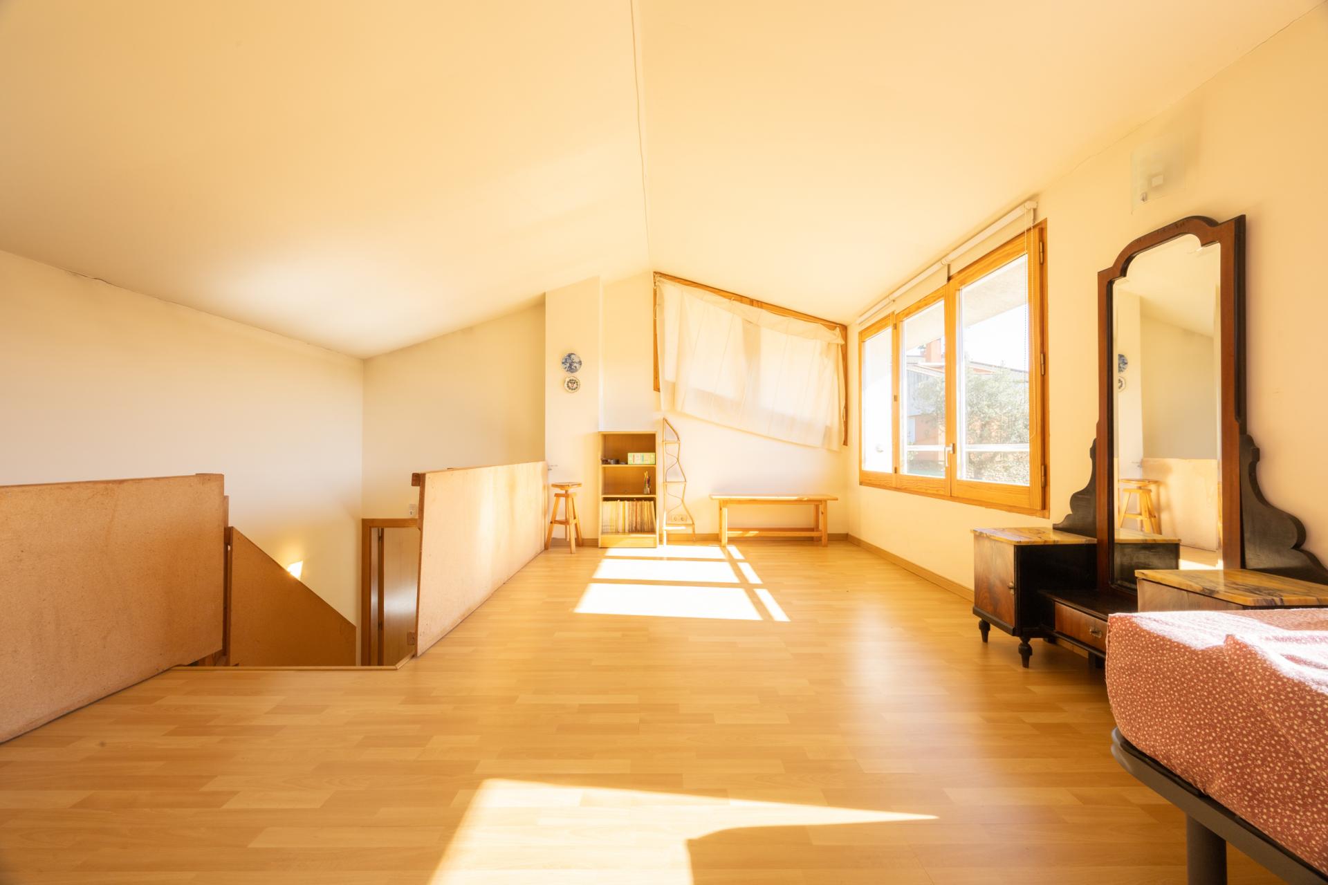 Consta de planta semisótano, planta principal y buhardilla. En la planta semisótano encontramos el garaje y diferentes zonas de almacenaje, como la leñera, el lavadero y el trastero. En la planta principal se ubica el salón comedor con unas vistas espectaculares a la llanura, un espacio con dos niveles y una chimenea que crea un ambiente cálido y acogedor, ideal para disfrutar tanto solo como en compañía. La cocina, amplia y tipo office, es muy funcional y cuenta con salida directa a la terraza y al jardín. La zona de noche dispone de tres habitaciones dobles, todas exteriores y muy luminosas, una de ellas con acceso a una terraza con vistas al jardín. En esta misma planta hay un baño completo con ducha y bañera, y un baño de cortesía adicional. La buhardilla es un espacio muy soleado y polivalente, perfecto para trabajar, estudiar o habilitar como habitación de invitados, según las necesidades.