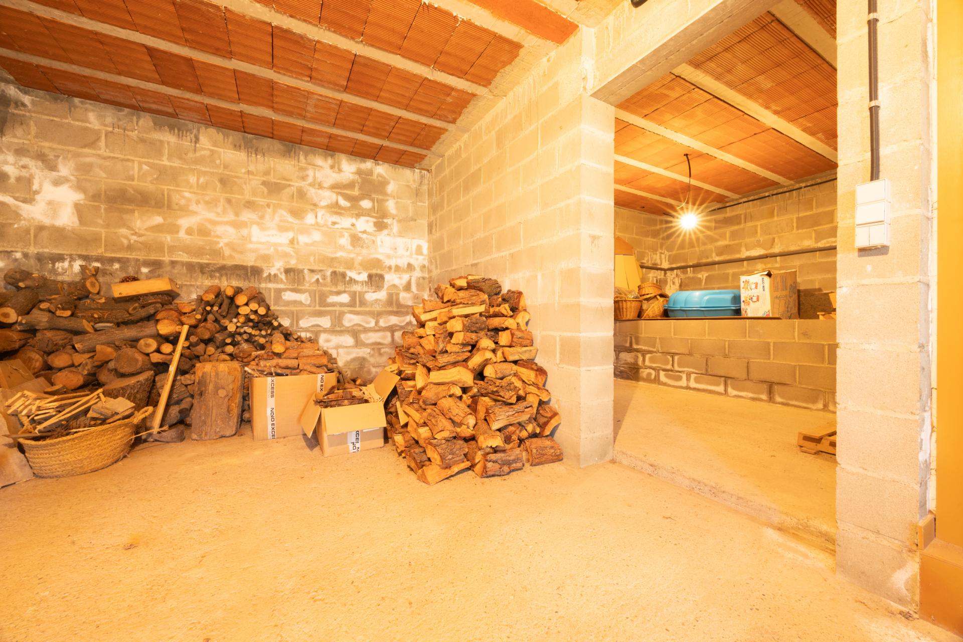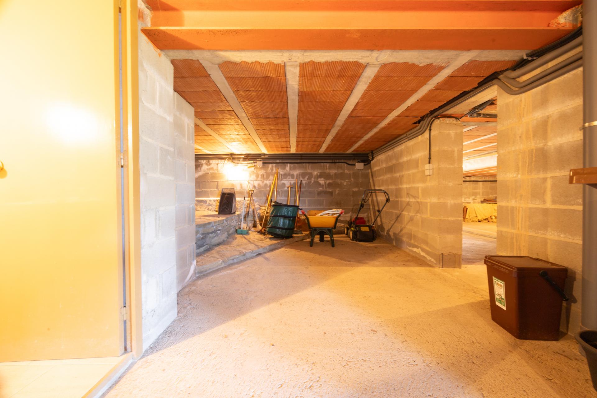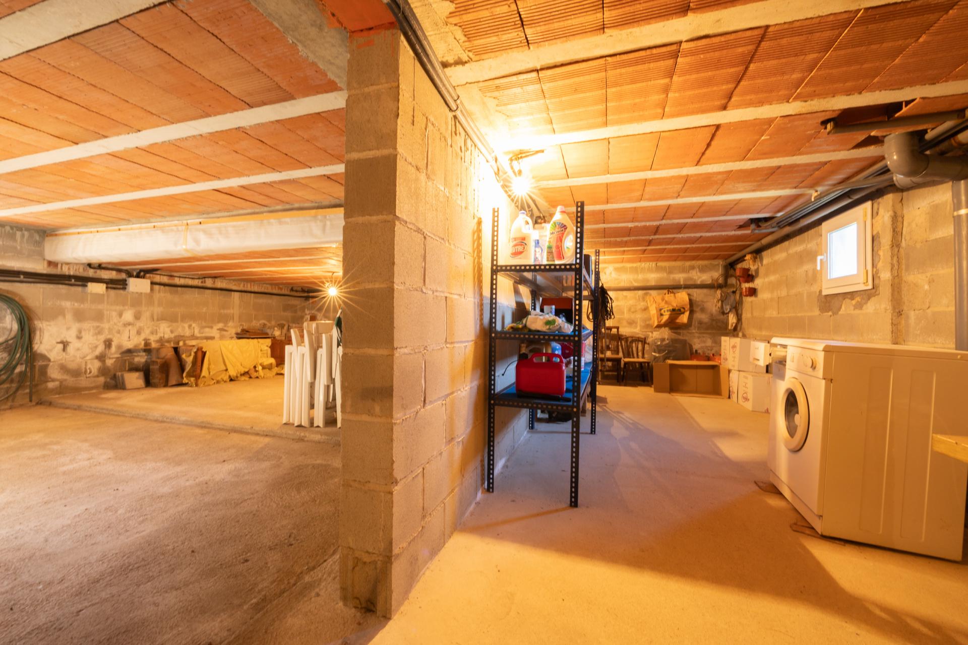 A la planta semisoterrània hi trobem el garatge i diferents zones d’emmagatzematge, com la llenyera, el safareig i el traster.