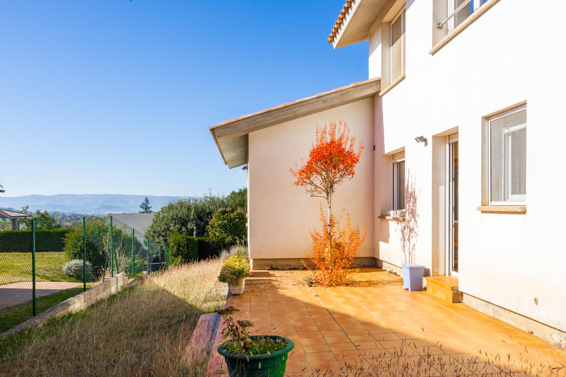 La casa està envoltada de jardí, és molt assolellada i ofereix vistes obertes. Entre les seves característiques destaquen l’aparcament, vidres dobles, fusteria de PVC, sòl de gres, xemeneia, cuina office, porxo, terrassa i safareig. L’entorn és tranquil i compta amb serveis propers com muntanya, autobús, farmàcia, centres esportius, restaurants i parc infantil.